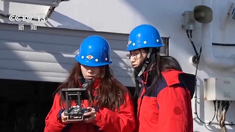 操作无东谈主机的王业和张乔乔是打听队里最年青的队员,她们操作的无东谈主机搭载有多光谱相机,每到一处站点齐要飞到指定高度对海冰进行大边界不雅测扫描。