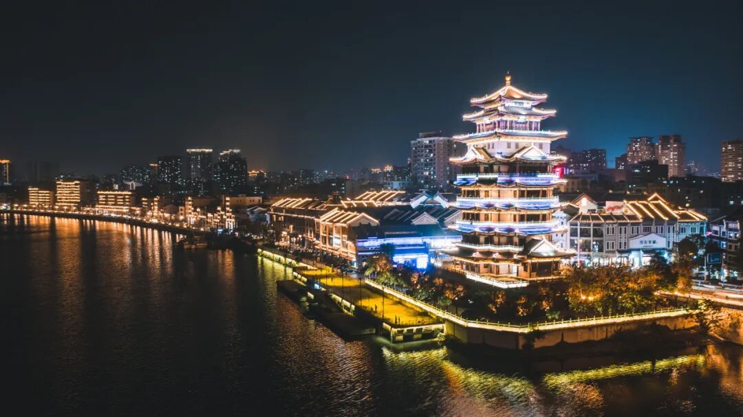 傍晚转场水东街,古色古香的骑楼古韵悠悠,灯光亮起时,古风与当代和会,合江楼灯火灿艳,江面倒影如梦似幻,沿街的焰火气味,藏着惠州的温暖。