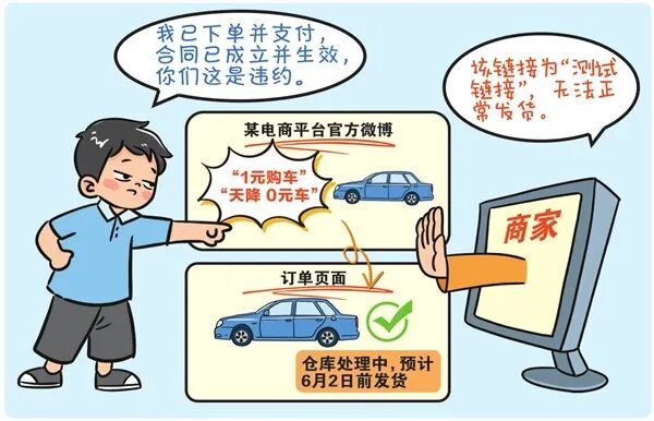 2025年5月,某电商平台通过官方微博发布“1元购车”“天降0元车”等促销宣传,激发世俗关怀。陈某在看到联系信息后,于该平台“新动力体验中心官方旗舰店”发现一款标价仅为1元的某款新动力汽车,就地下单并完成支付。订单页面深化“仓库不息中,展望6月2日前发货”。