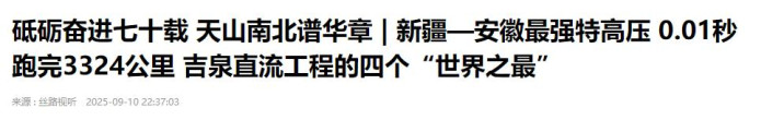 从新疆昌吉到安徽皖南,±1100千伏特高压工程横跨3324公里,把大漠风电煤炭,秒变华东工场能源,累计送电超4000亿度。
