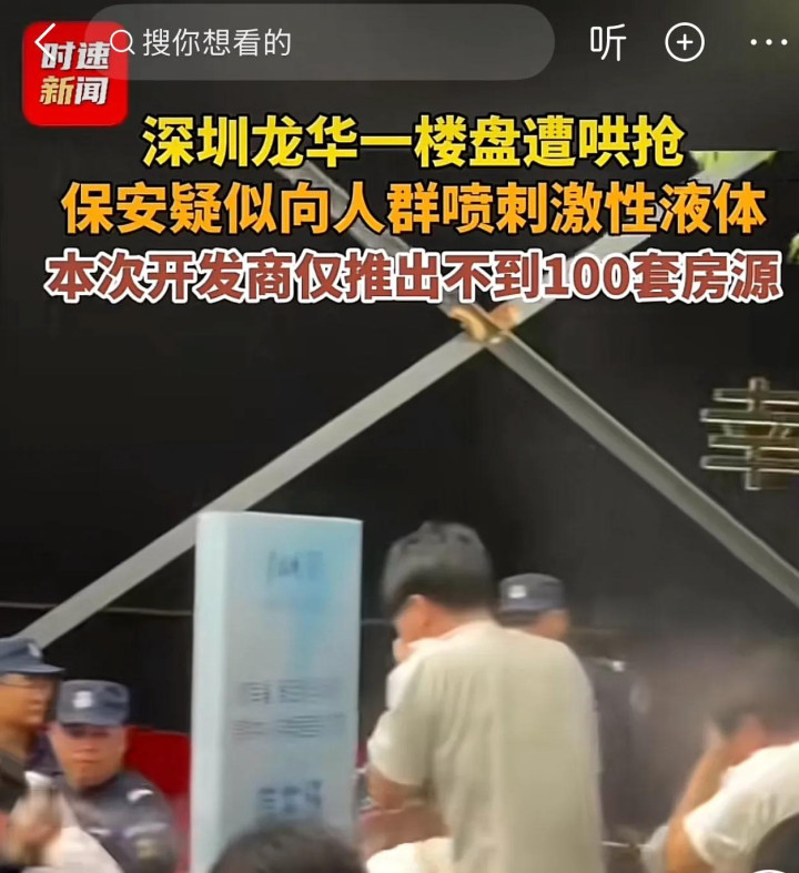 另一则报谈是深圳龙华一小区开盘,一刹找到了哄抢,致使于保安现场喷洒不解液体来驱赶抢购者,据统计100套房源王人备卖光。