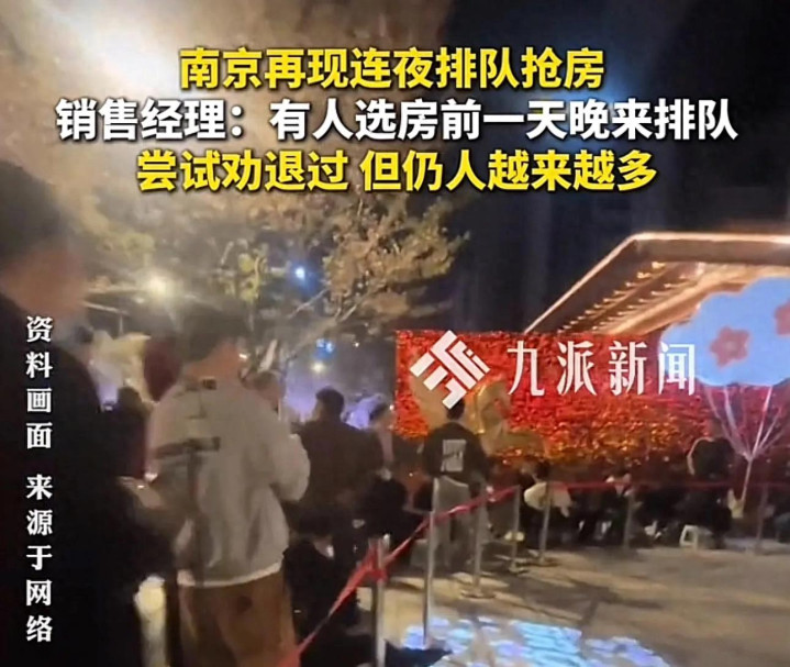 一则报谈的是南京出现了连夜列队买房,诞生商暗示为了散播东谈主流,专门遴荐了下昼开盘,没念念到头一天深夜三四点就有市民奋勇列队了,况兼当天99套房仅剩了几套沿街的莫得售出,其他沿途售完。