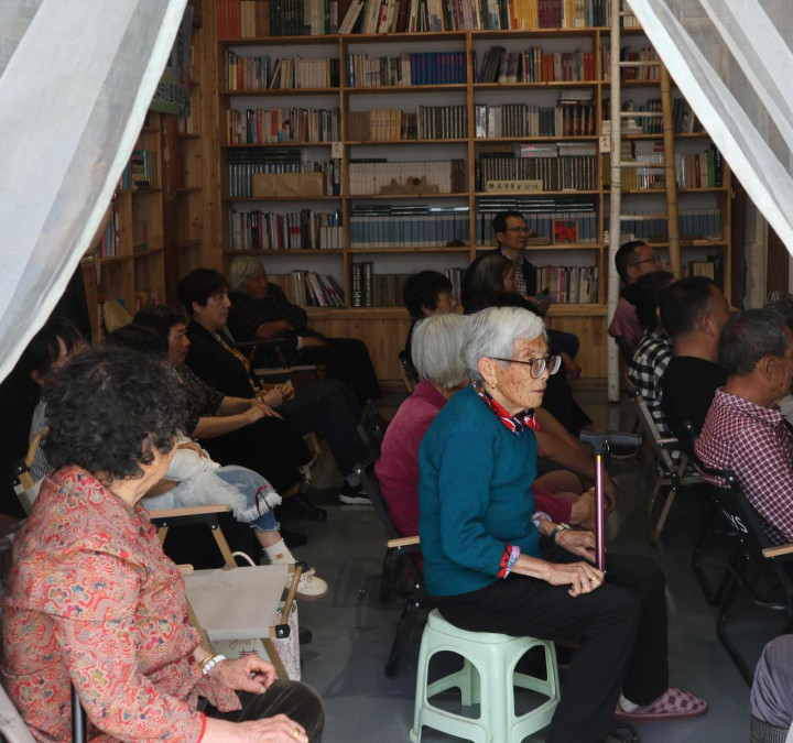 在会场的一角,一位满头银发的老奶奶越过引东说念主凝视。她不肯坐软垫,挑升从家里搬来了一把旧竹椅,端法令正地摆在最前排。“年事大了坐不惯矮板凳,但这书里的故事,我是一句皆不想漏。”老奶奶笑着说。在她身旁,一双耳顺之年的良伴相互搀扶着入座,老先生戴着老花镜,手里还拿着一个札记本,准备随时记载。