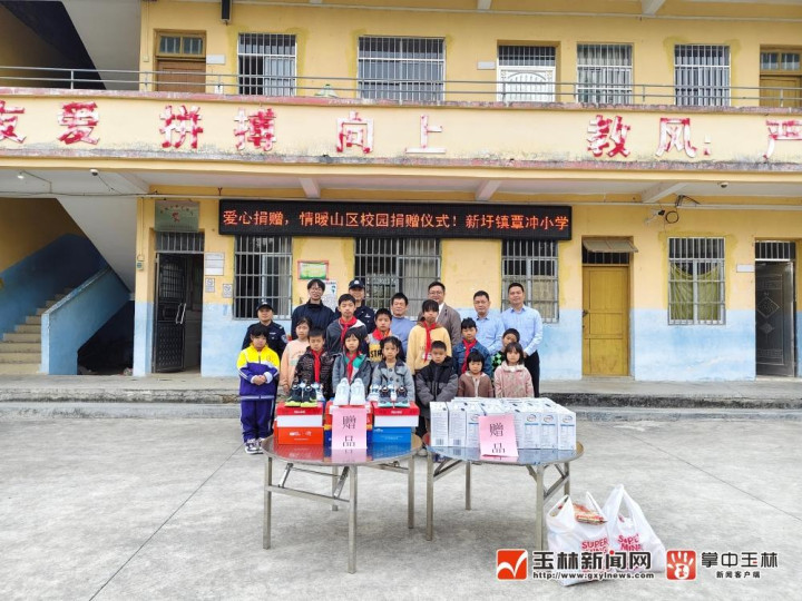 农行玉林玉东支步履覃冲小学捐赠慰问品。