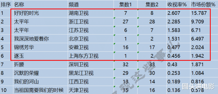 电视剧收视率名次榜,你在追哪一部?码字不易,接待温存点赞,留言盘问。